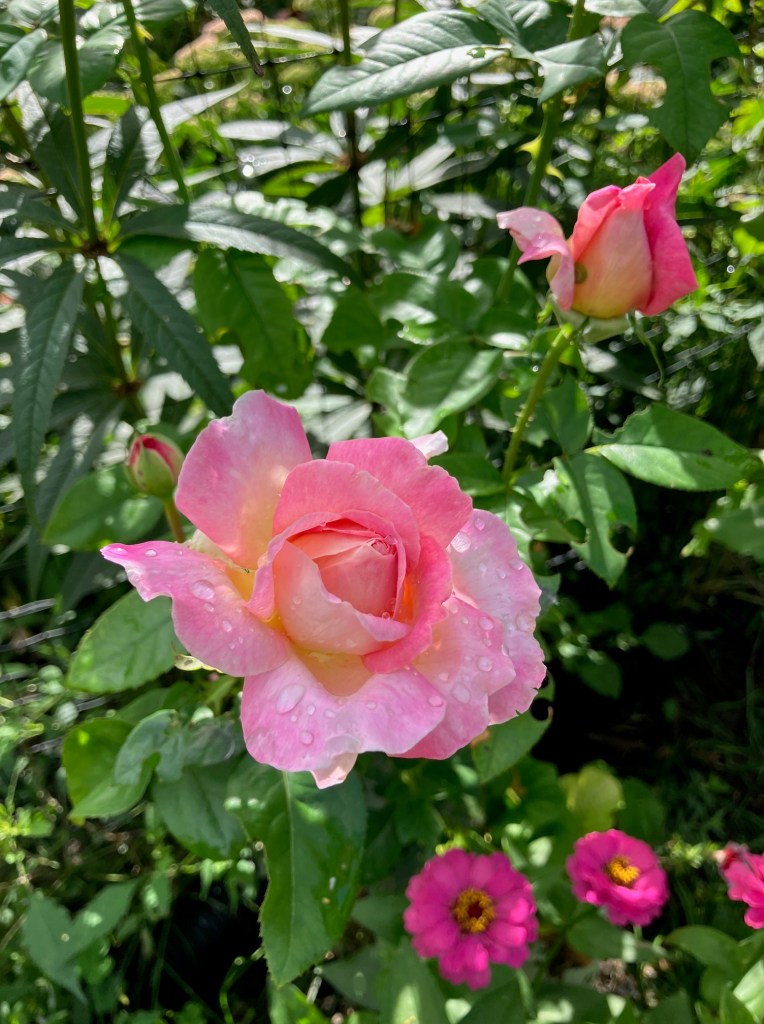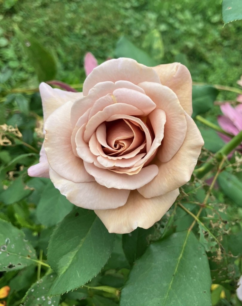 Two of my favourite roses. Left is Chicago Peace. It hasn’t done great because it was shaded by the white Butterfly bush. But it died off this spring, and I didn’t put the new one in the same spot. Since then Chicago has gotten more sun and she’s thriving. Right is Koko Loko – new this year, but a rose that had been on my wish list for a long time. I’m so glad I finally got my hands on her – isn’t she stunning?
