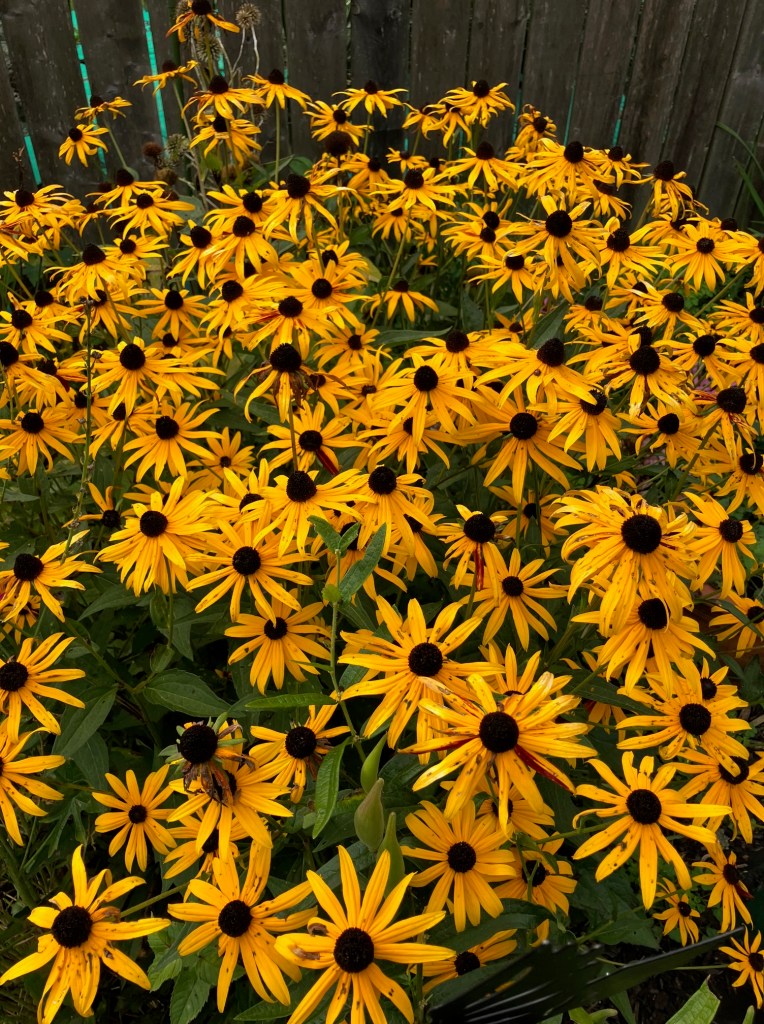 The Black-Eyed Susans are amazing this year. I split one of the big clumps up so I have them all through-out the garden.