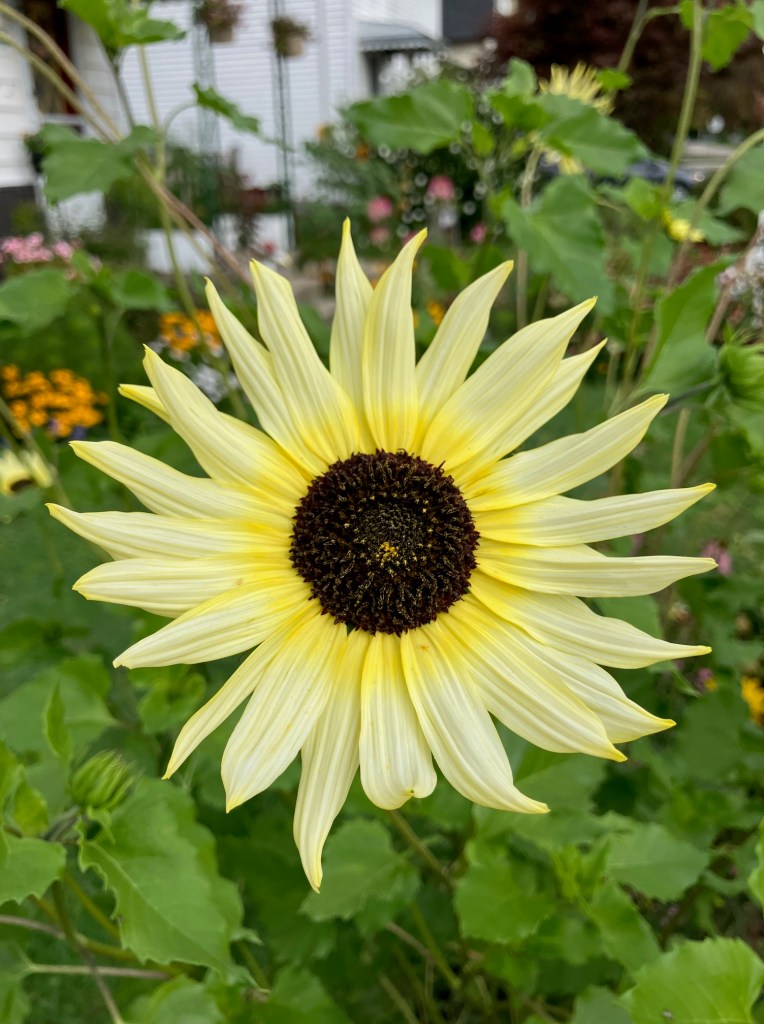 The sunflowers are still going strong. Mine are looking beautiful, but they aren’t as tall as my neighbours.