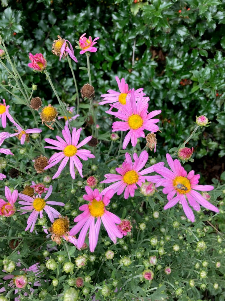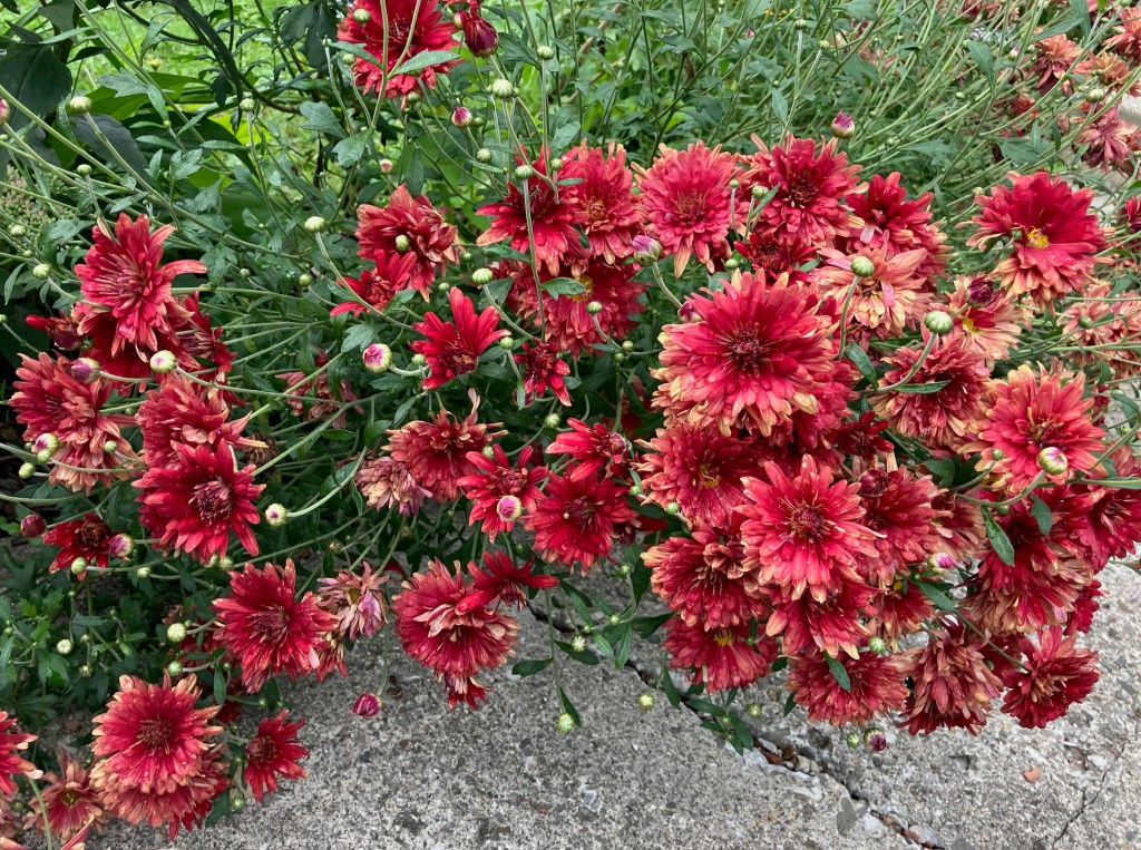 The perennial chrysanthemums are blooming nicely.