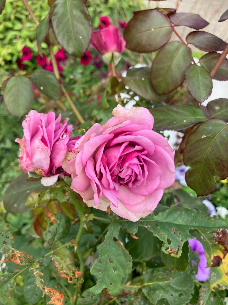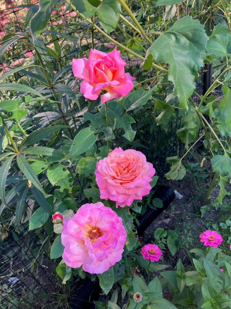 Such pretty flowers especially the roses! If you pinch back Sedum in early summer it doesn’t flop as much:)