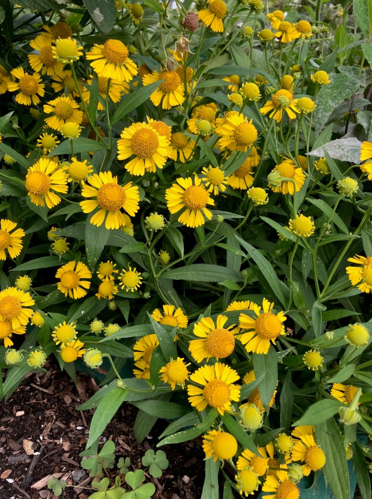 The Sneezeweed, also known as Heleniums, have started to bloom. They are one of my favourite fall flowers. On the left is the native version, on the right is a hybrid I bought this year. I thought flower had more red, but it turns out, it’s just the centres that are reddish. Still, it has those cute button flowers.