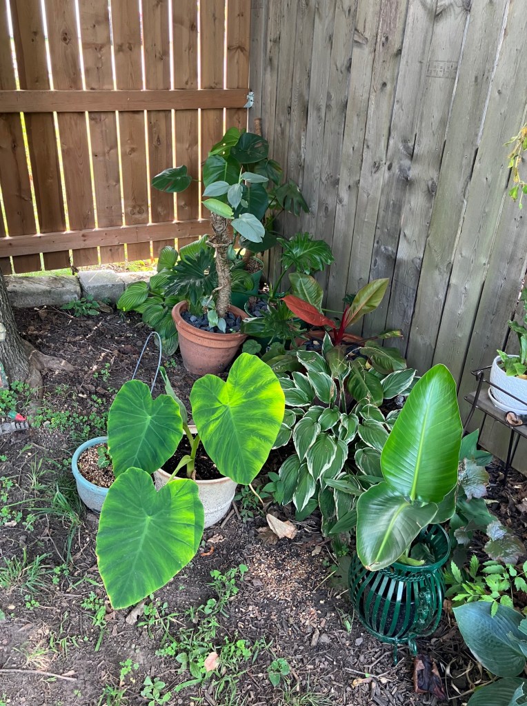 Several of my large houseplants have been enoying a nice vaction in the back (shady ) corner of the Woodland garden – and they seem quite happy about it. I’ll have to bring them in in the next few weeks.