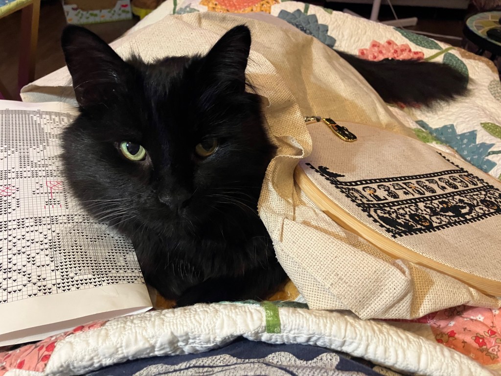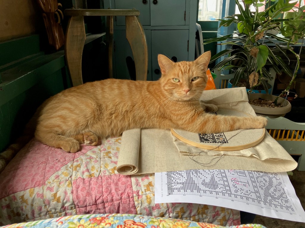 I love the way this sampler is shaping up for you despite some questionable helpers! lol