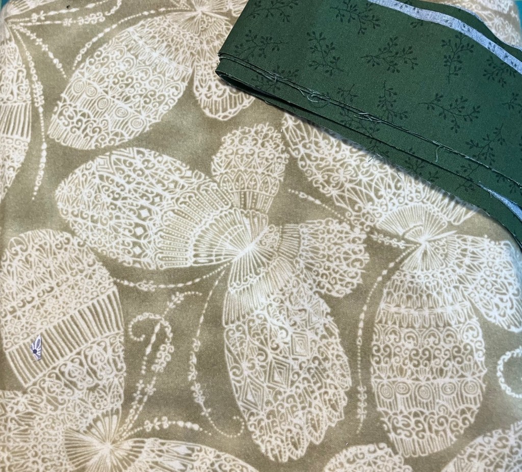 The stash yielded up this the most beautiful butterfly flannel for the back (seriously – could it be more perfect?) and I had just enough of that dark green for binding. And when I say just enough, I mean it. There was barely a sliver left when it was cut up. Sometimes, things just come together perfectly!