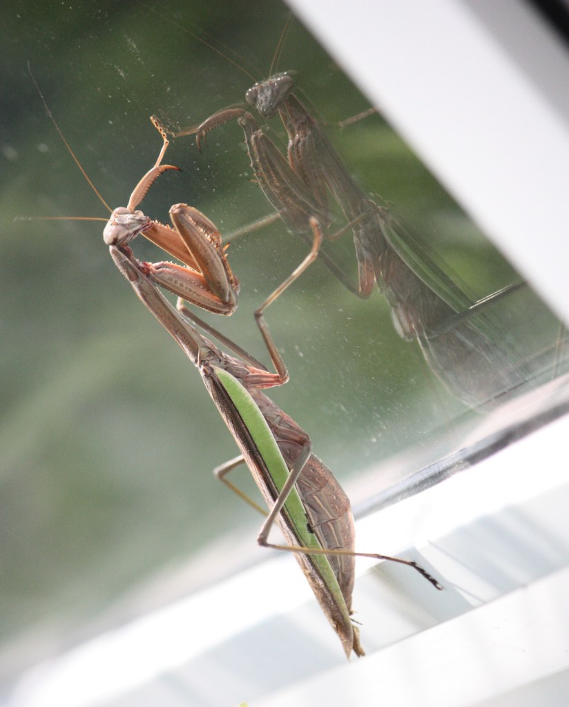 I caught this lovely lady admiring herself in the reflection on our big front window.