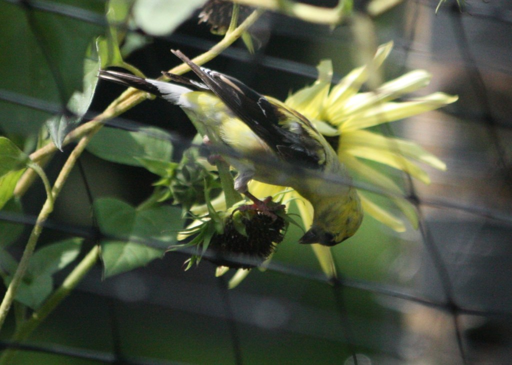 They absolutely fascinate me. They aren’t big birds… but they still look like they should be too heavy to hang off the stems and heads of the sunflowers.