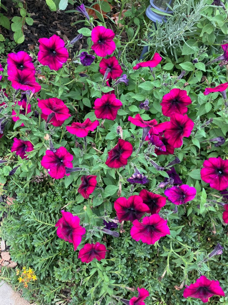 Koko Loko still had several blooms. I love how the colour is so dark, and slowly fades out as it blooms. I did cut these ones and bring them inside, along with a few bolero blooms.