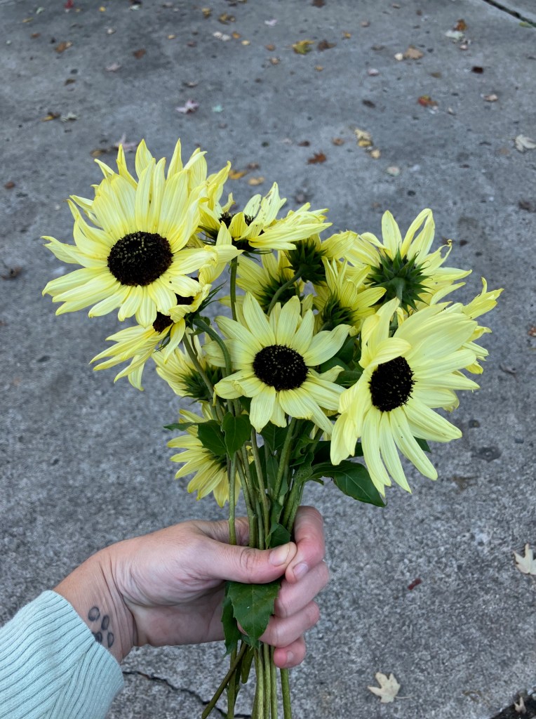 We had a few days of pretty heavy rain, and it knocked down the Vanilla Ice Cream Sunflower out front. So I took it down completely and cut the remaining blooms for another vase. There are still two other large plants in the garden, so there’s still seeds for the finches.