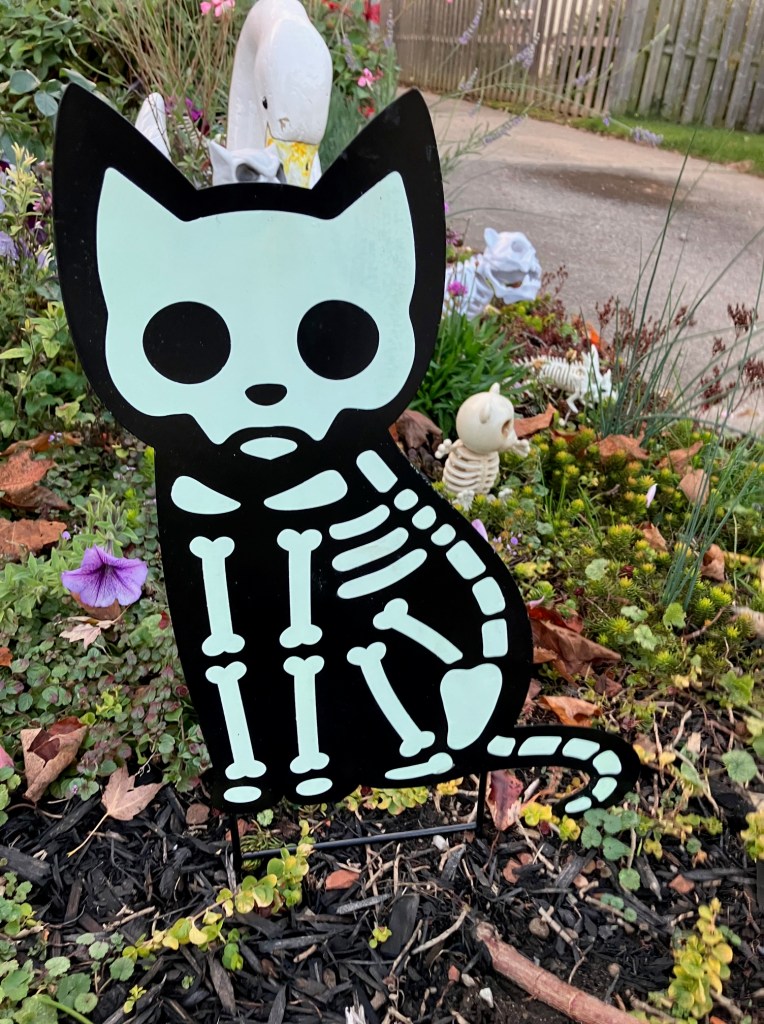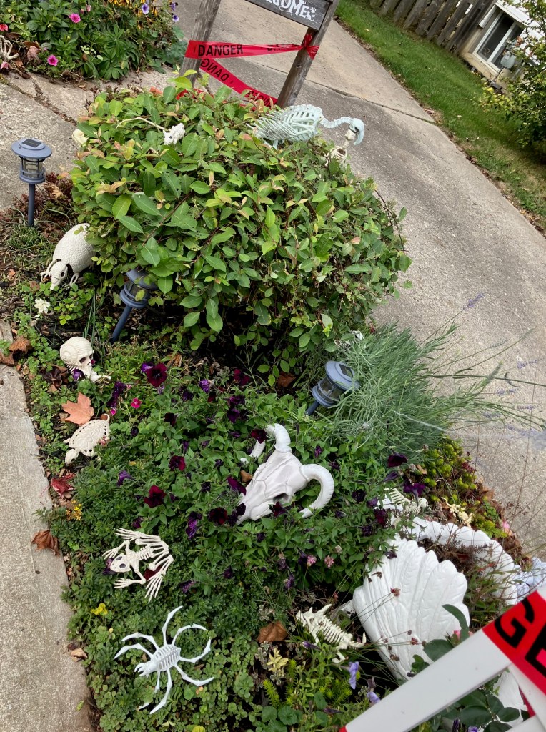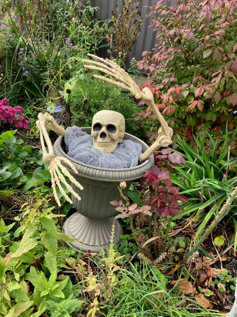 Last year, I set up my Hallowe’en decorations as soon as the calendar turned over to October. But I learned a valuable lesson… the grass is still growing then! I had to pull up all my tombstones and bones to mow the lawn and it was a total pain!