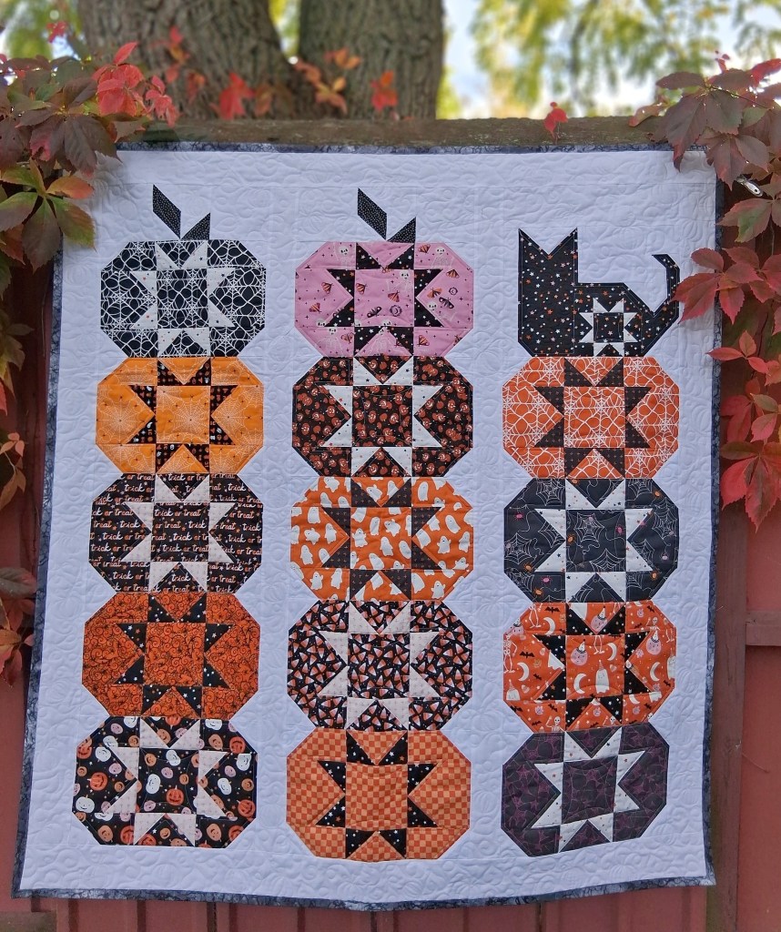 Several of the quilts have been gifted or will be. And I know she’s keeping a couple (including those awesome cat placemats). But I know for a fact that Halloween quilt is in the shop! And on sale until tomorrow!