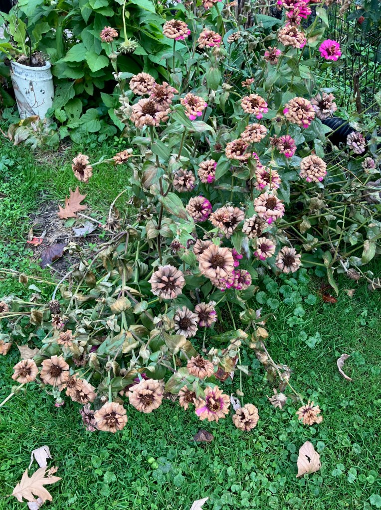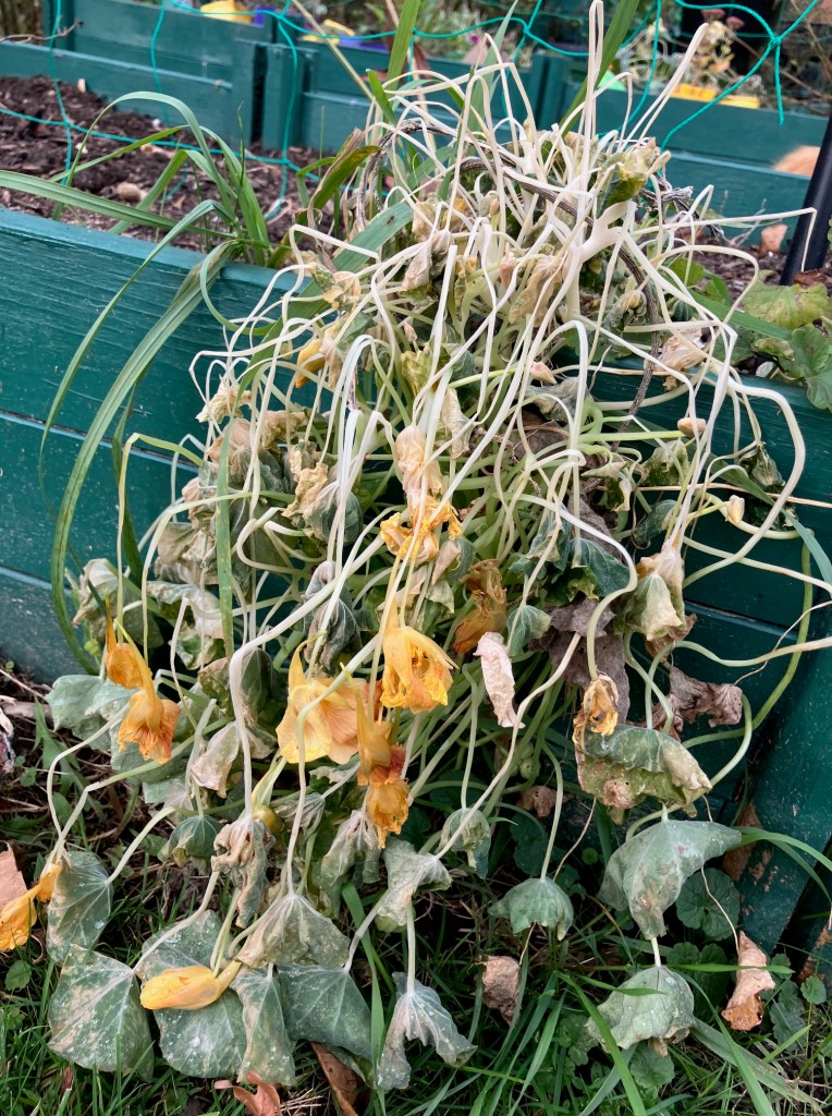 Those beautiful nasturtiums are no more. The frost has taken out most of the annuals.