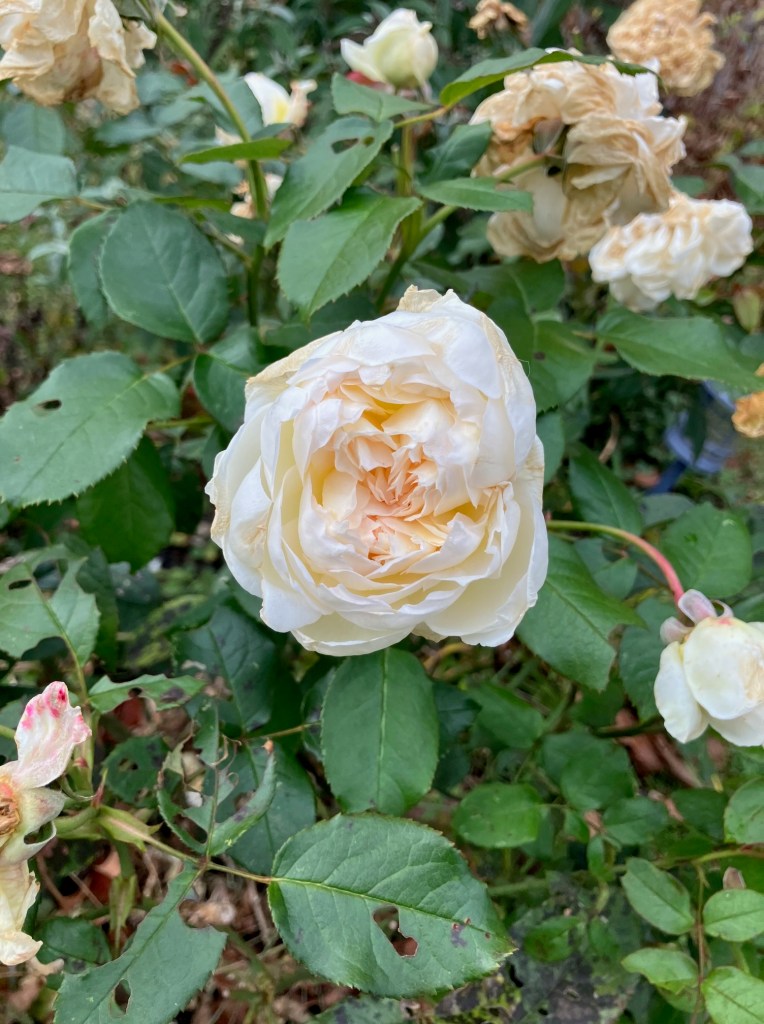 Several of the roses are still going. And both Chrylser Imperial and Chicago Peace have put up new buds. I don’t think they will get a chance to bloom fully, but they will try.