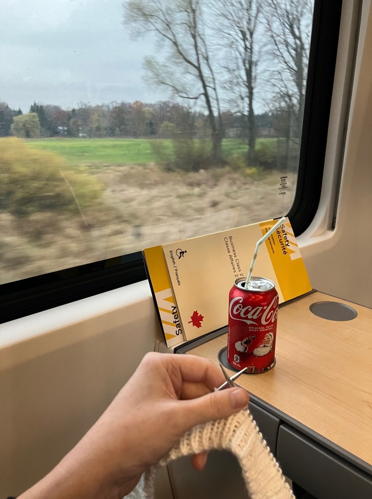 So Friday afternoon, Dave dropped me off at the station and soon enough I was zipping along, watching the world go by as I got some knitting done.