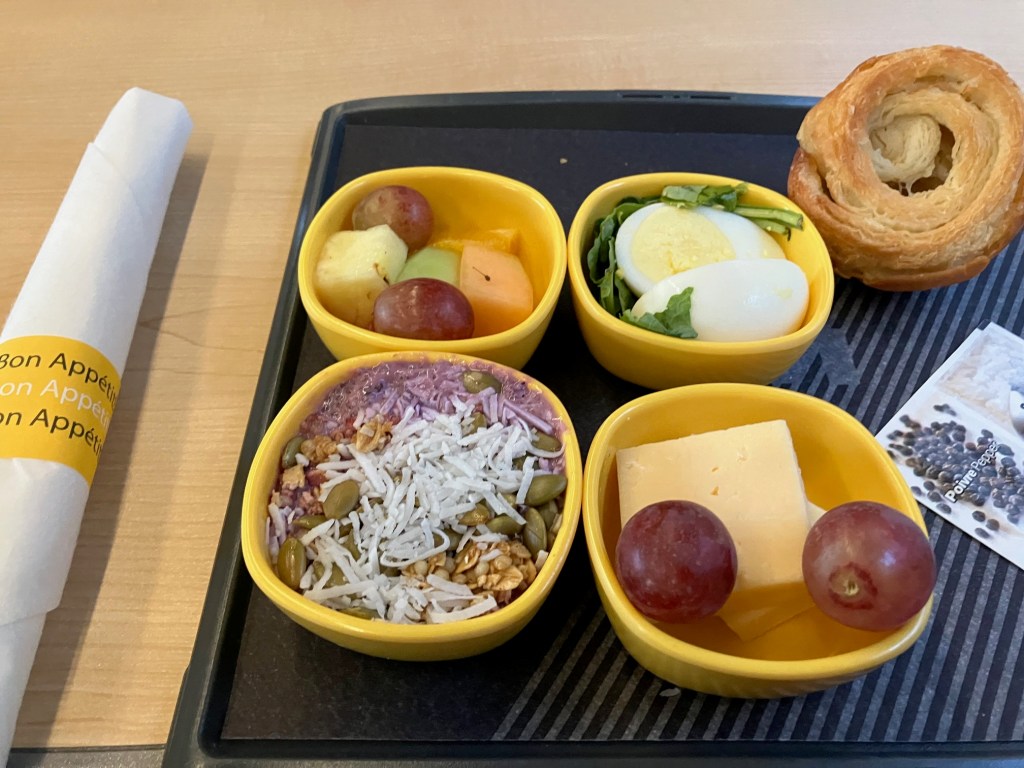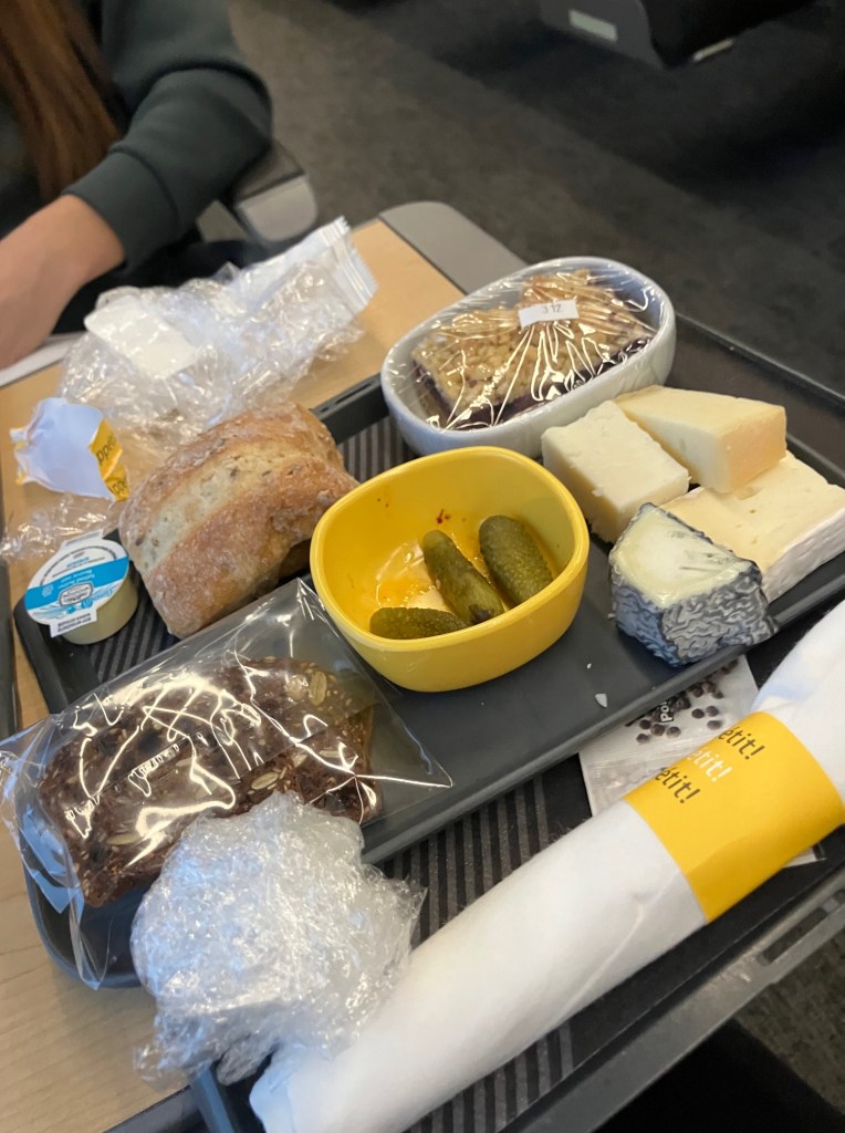 I did splurge a little, and went business class. That meant I got free drinks and a cold meal.