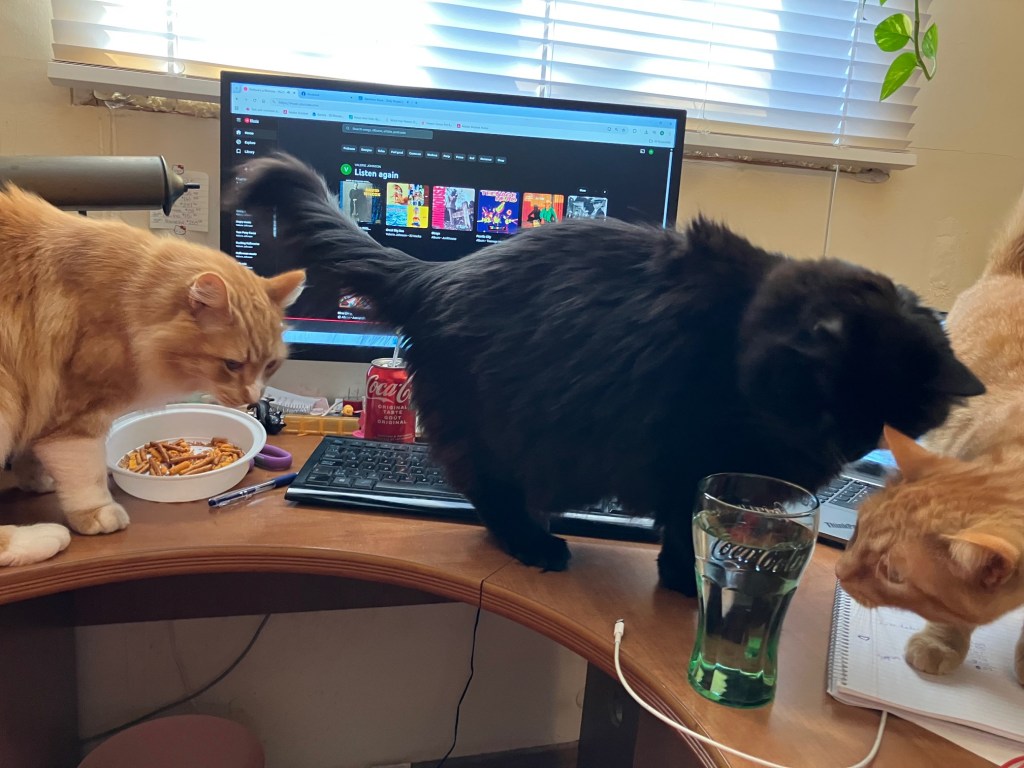 This is entirely too many cats on one desk! How am I supposed to do my day job?!?
