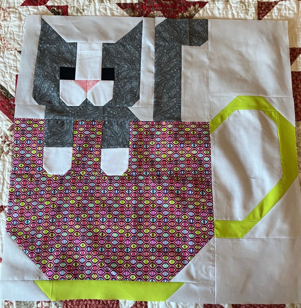The pattern is Kitten in Cups by Sew Fresh Quilts. Her patterns are always fun to make… but they do have a lot of pieces!
