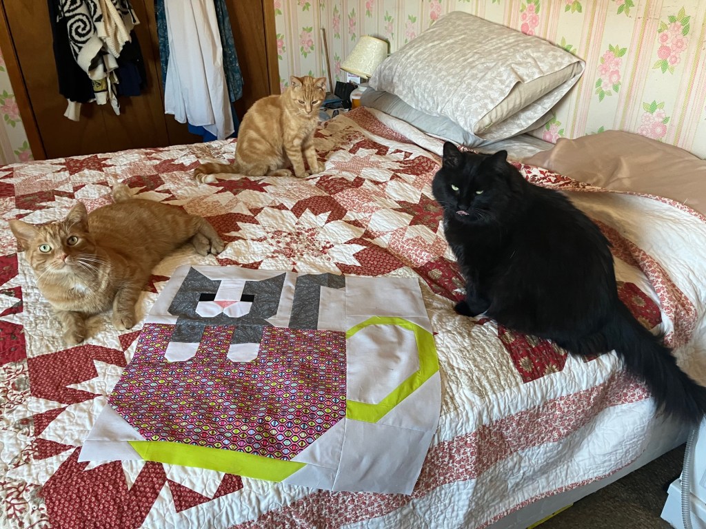 I think those blocks are the cutest ever, but even better? The kitties on. your bed. I want to hug them all. 🙂