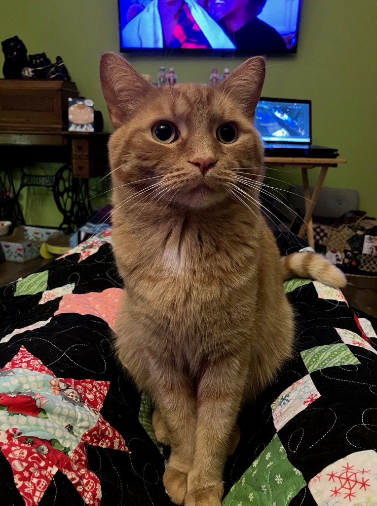 It’s been there for over two weeks. Doing nothing. Tonight, just after dinner, I’m sitting watching TV. Dave is in his studio (adjacent to the TV room but behind a closed door) getting ready to teach. Most of the cats are upstairs. Lemmy is in my lap