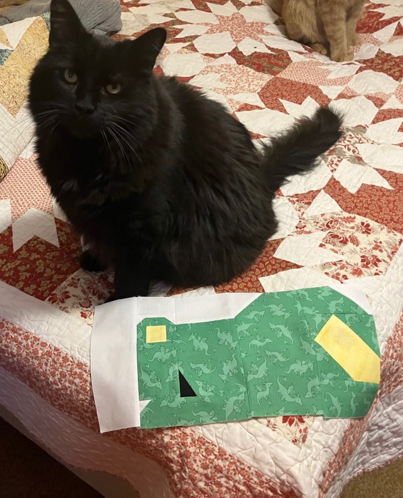 See that centre fabric? Could she have made a better request? I’ve had that dragon fabric for ages, just waiting for the perfect project. Since I had dragons on the fabric, I could have gone with simple stars or something. But what’s the fun in that? So I went searching for dragon patterns. It didn’t take long to find this one.