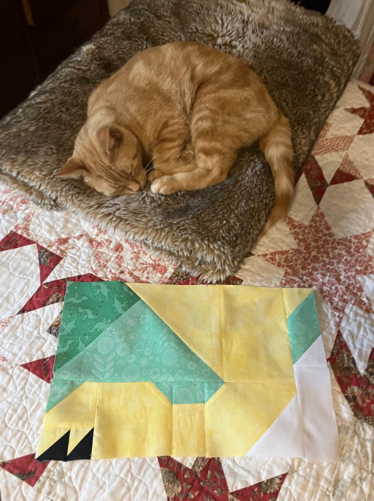 I mentioned the other week that I had taken on a quilt commission. A former coworker reached out to me and asked if I would be able to make a quilt for her first grandchild (who is due in March). She had only three requirements – that it be mainly green and yellow… and incorporate dragons!