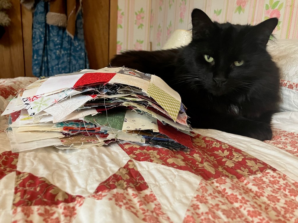 Eventually, they will be paired up as well, making 16 patches that measure out to 6 inches finished. And well… that’s not very big. Burton and I are going to need a lot of them! I think this project may stretch out for another year.