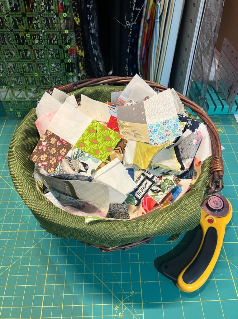 Working on the dragon quilt meant I put a good dent in basket of four patches.