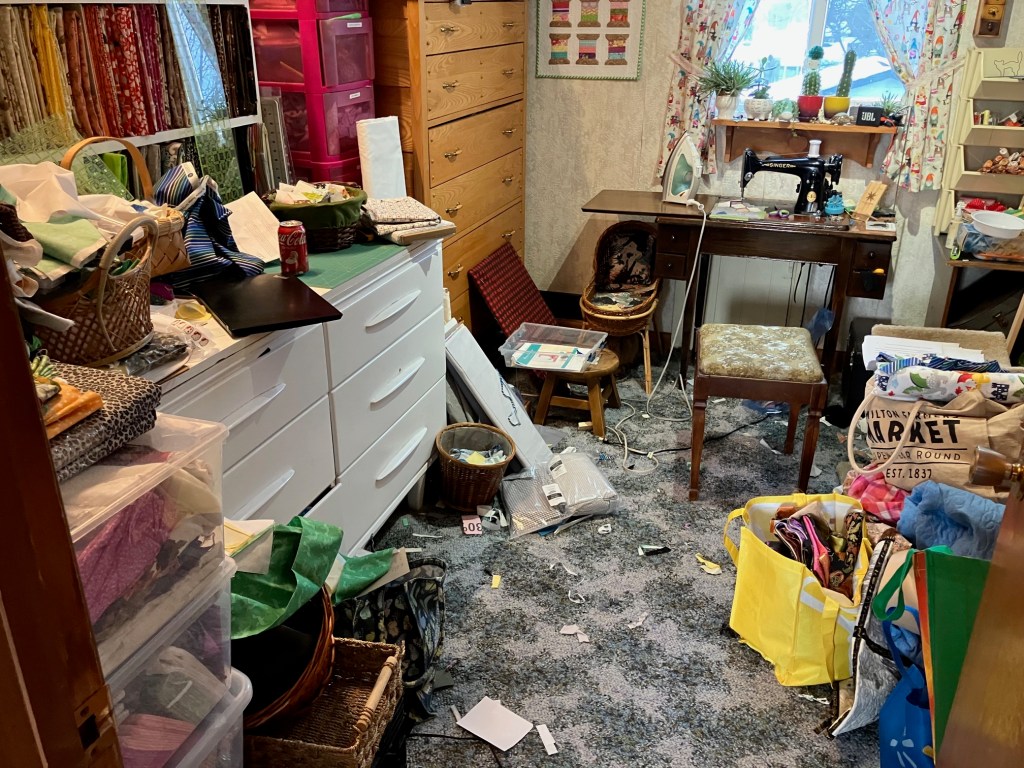 Or… as clean as it gets as it’s also terribly cluttered. I really need to make these quilts and clear some of this fabric out!