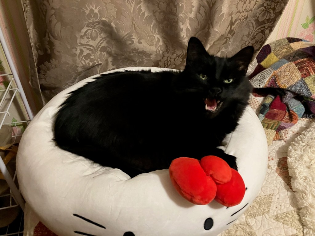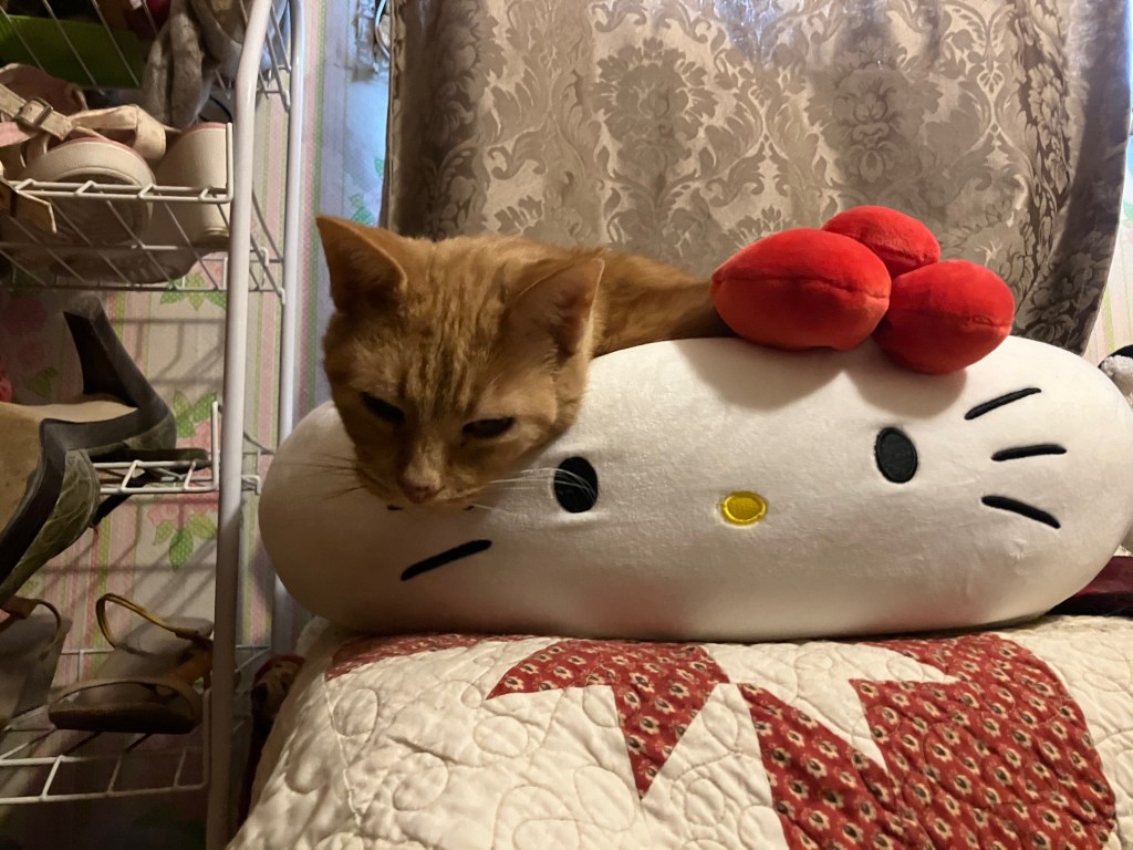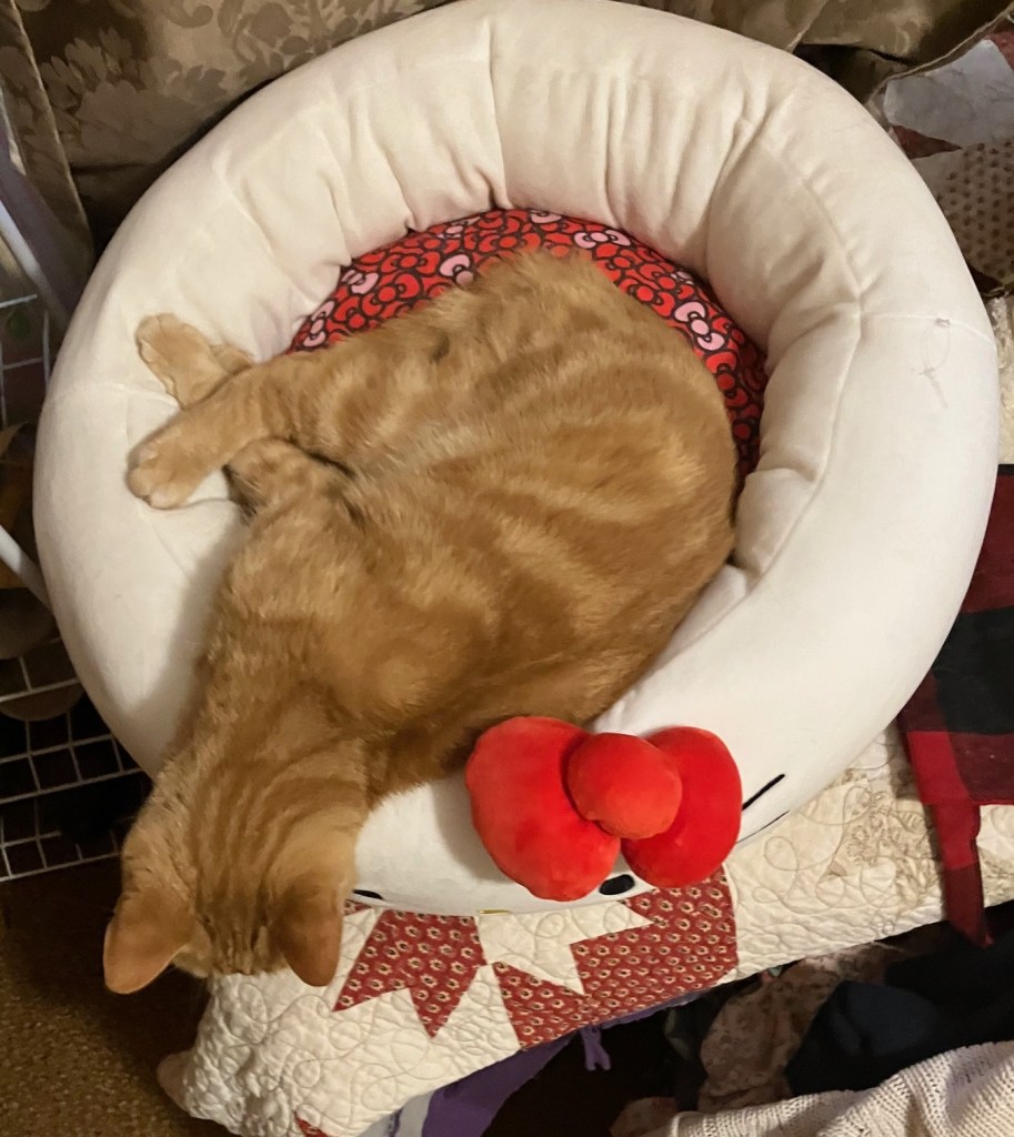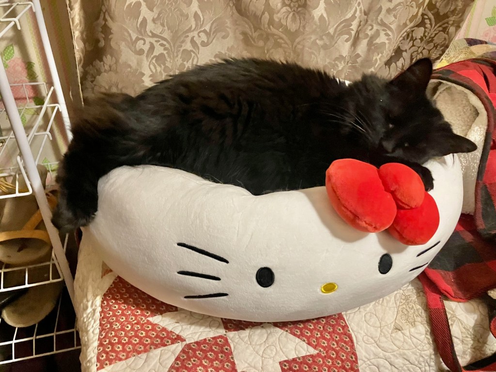 You will recall the Hello Kitty Squishmallow bed I got for Rupert. Well I’m happy to say, he still loves it.