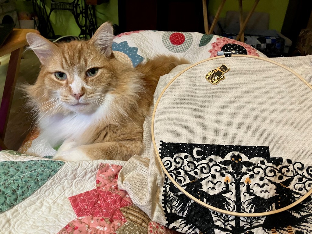 As is now our custom, Sir Furbs and I settled in to work on our witches this weekend. While the first part of the sky went quicky, for some reason, that last little bit was a total slog…
