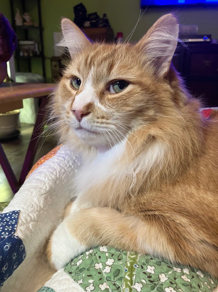 It appears he has a bit of a high prey drive. That means, when one of the other cats runs by him, his instincts kick in and he gives chase. With Rupert, this isn’t an issue. Rupert loves to be chased. And Rupert is fast, so he can usually get under something before Furby can catch him.