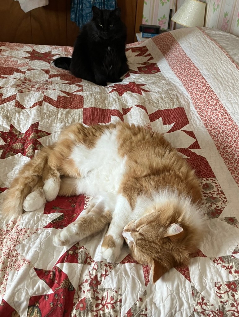 “Mom….. he’s on my side of the bed again….”
