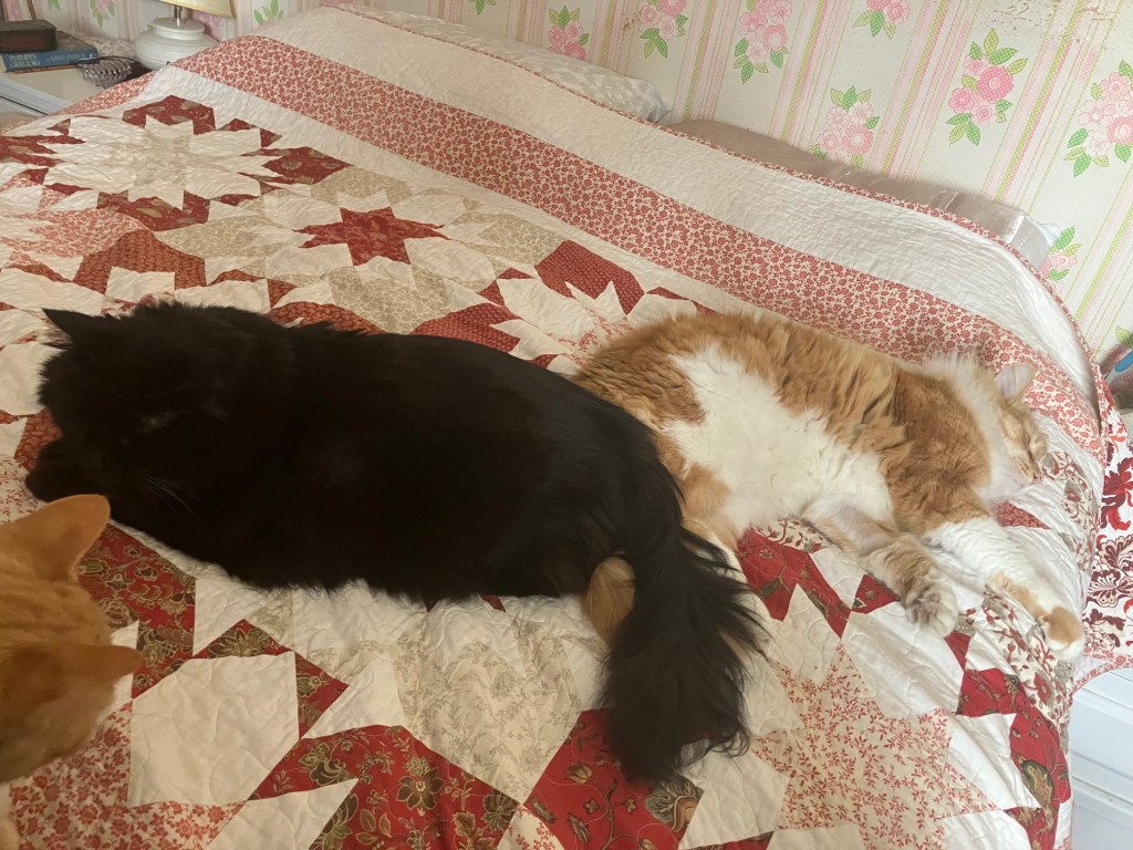 The fact that it’s cold and snowy also means none of the boys are going out and getting their ya-yas out in the yard (catio for Burton and Lemmy or wider world for Furby), which seems to have made things worse.