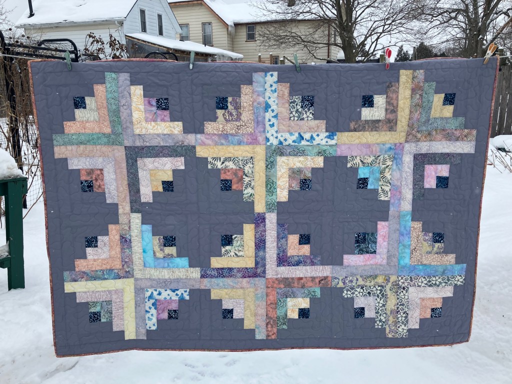 (We’ve got so much snow, I had to take pictures of the quilt on the horizontal – otherwise it dragged in the snow)