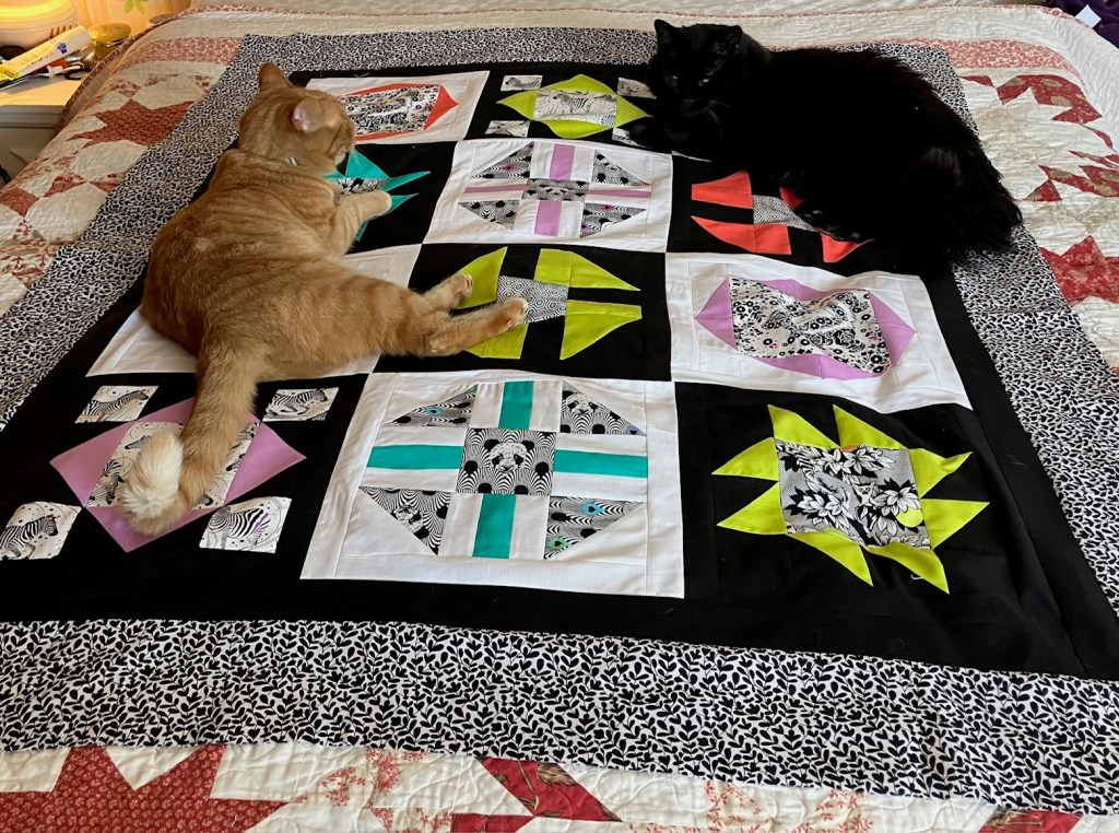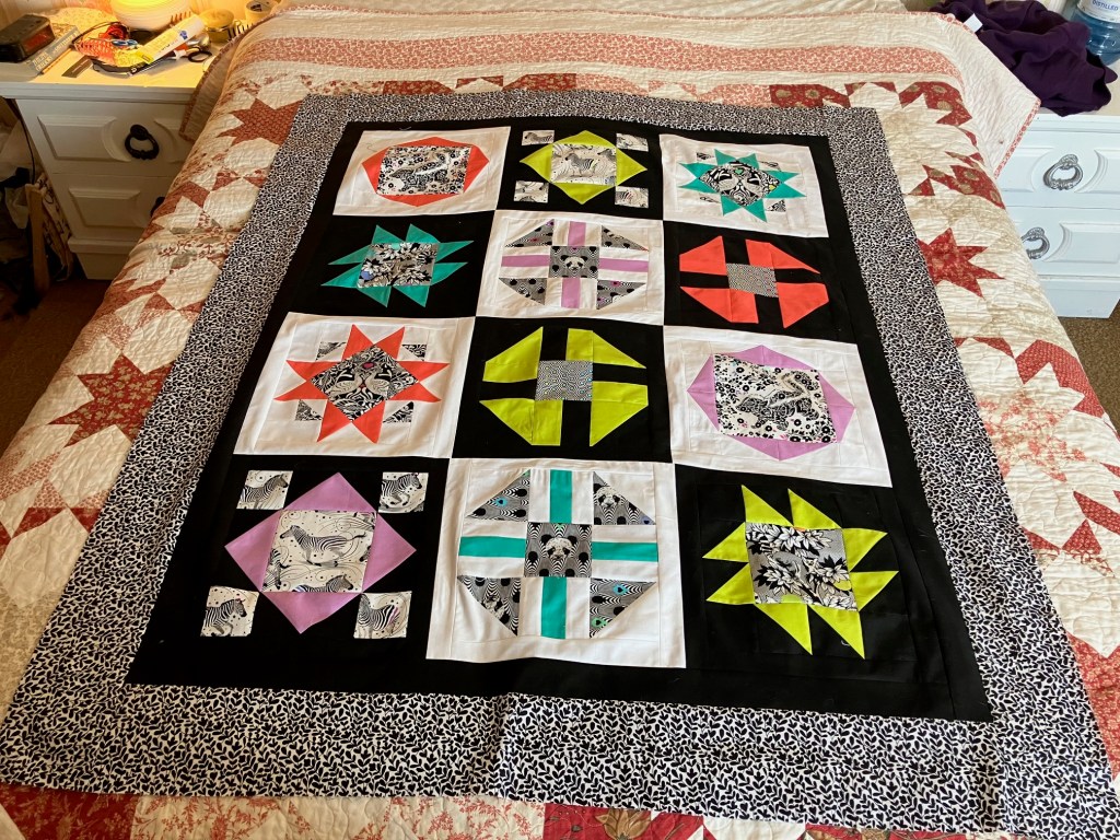 It was only 12 blocks, so it didn’t take too long to sew them together, and add a couple borders to build out the size a little.