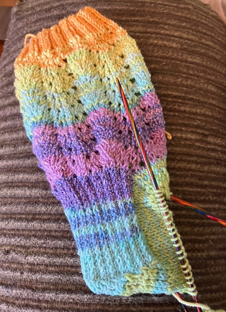 Those of you that guessed that I would cast on a sock before re-tackling the ribbing on the shrug were right.