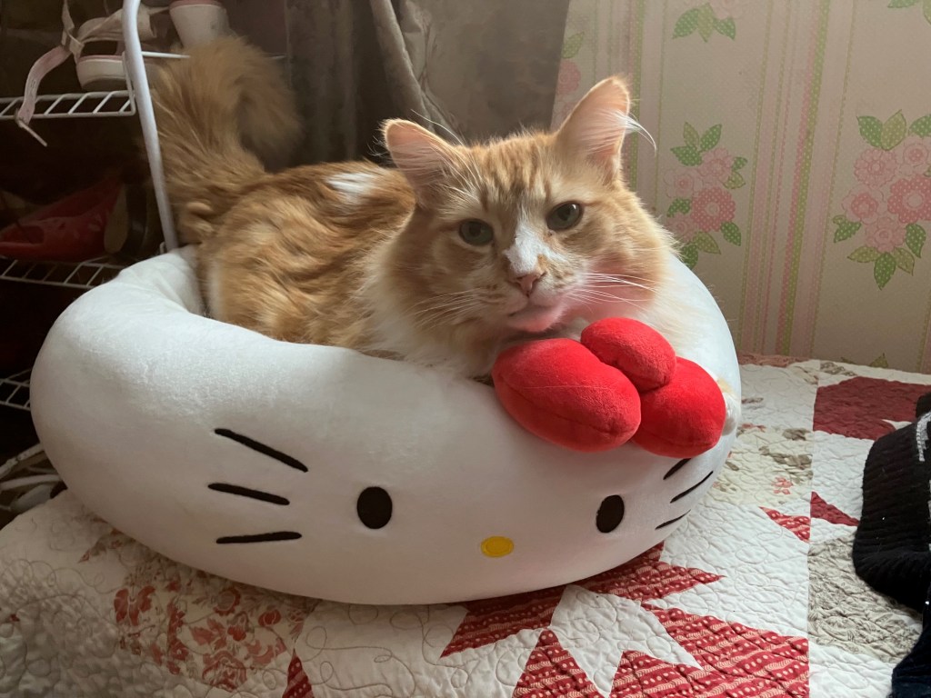 Poor Rupert – he really can’t get a break with the others trying to takeover his Hello Kitty bed. I woke up the other morning to discover this…