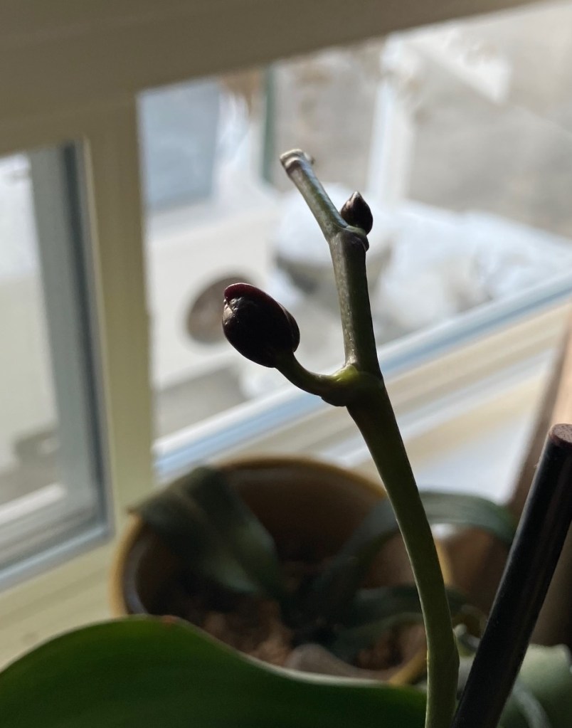 And last… the only orchid with a bloom stem is taking it’s sweet time. But as you can see, we are slowly getting closer to actual flowers! They may even come before spring!