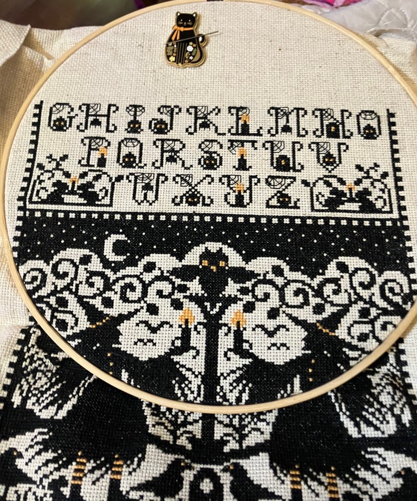 All the candles are lit, and the pumpkin eyes are glowing. It’s the little details that really make this sampler!