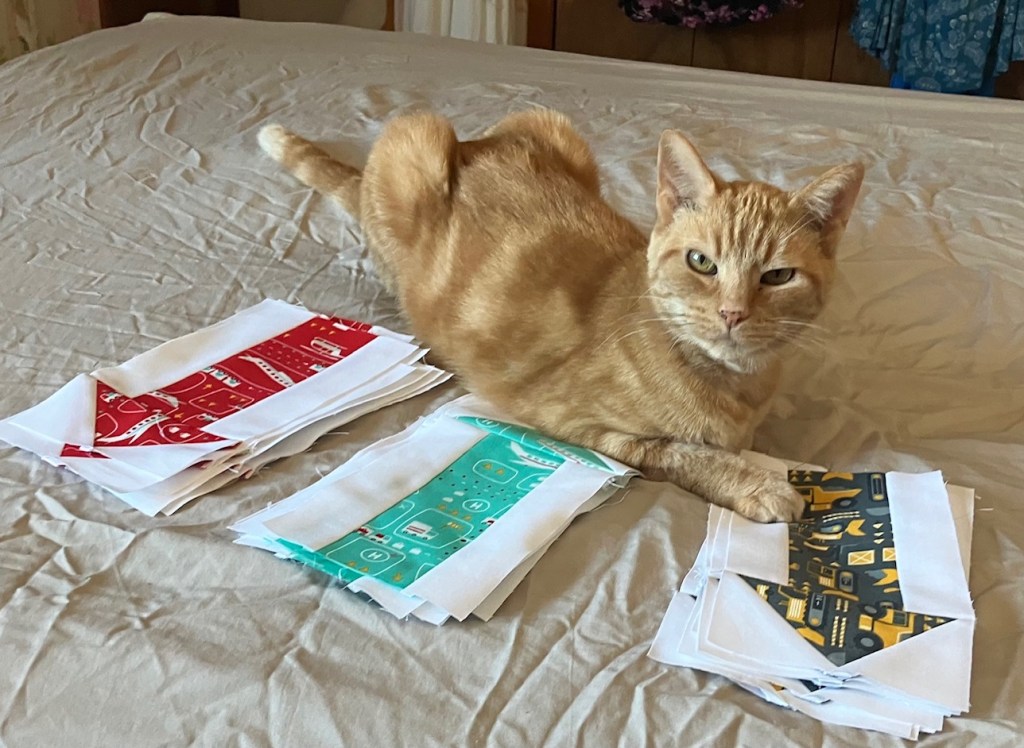 I’m not sure what’s up with that, but he’s a pretty good sewing companion, so I won’t complain! And maybe next weekend he and I will be able to actually finish the rest of those arrows!