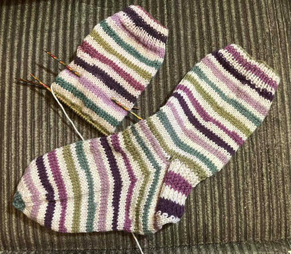 The Kroy Stripe socks really are flying! The first sock is done, and the second… I’m just about ready to start the heel. At this rate, they will be done by the weekend!