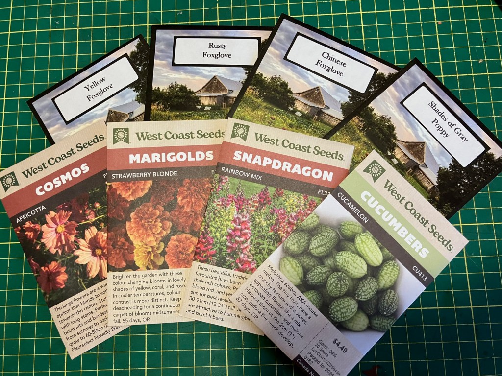 Because I’ve got more seeds to start! The top row were ordered from a place on the East Coast that carries a lot of unusual seeds. I got mostly foxgloves, but also some more poppies. I really hope my poppy experiment works out this year!