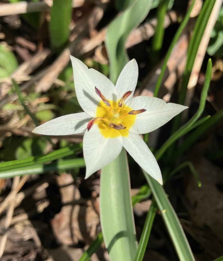 We’ve got a couple tulips – the first a small orange one, and the second, an even smaller species tulip (the original “natural” tulip the ones we know and love were developed from), The snakehead fritillary is also coming alive. It’s actually a type of lily so now that it’s up, I have to check it for the dreaded red Asian lily beetle! It’s worth it though – those little nodding blooms are so pretty.