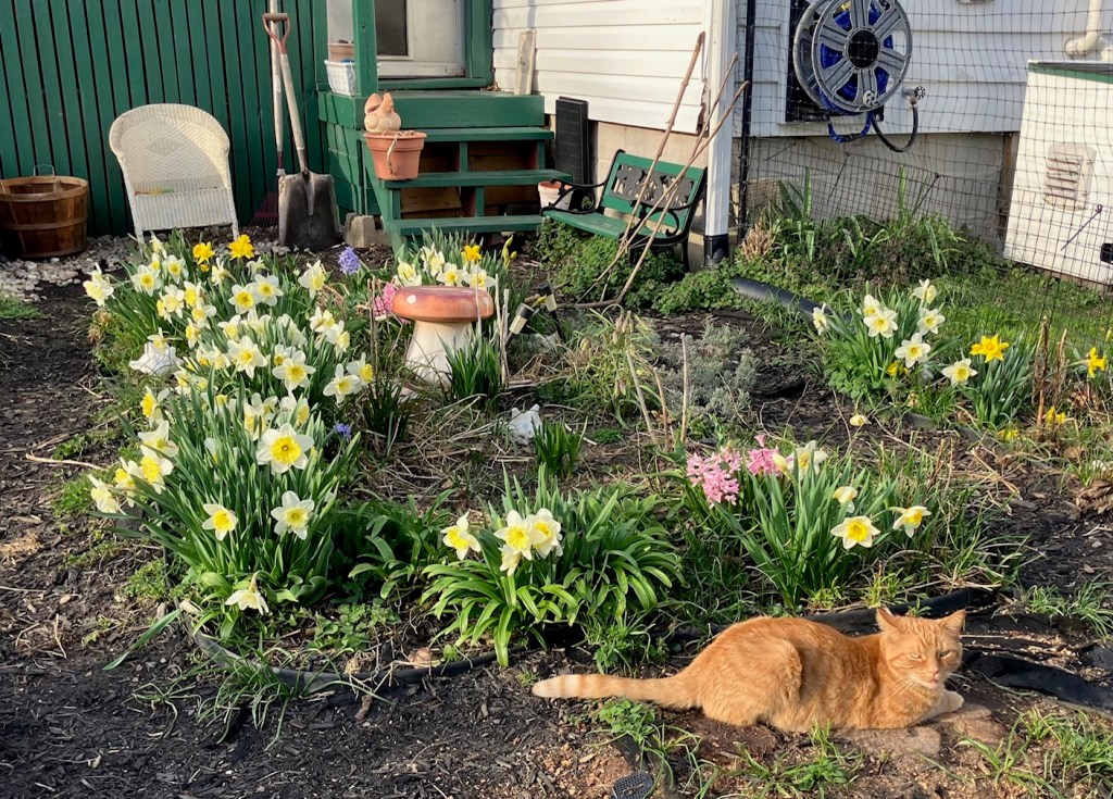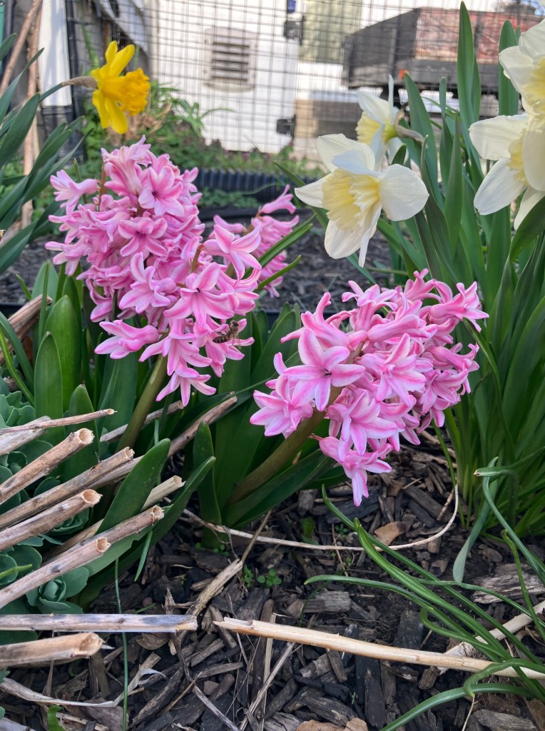 Every so often, when the wind blows the right way, you get a waft of the hyacinths amazing perfume. I don’t have a lot of hyacinths, but that pink clump has multiplied nicely. I can probably split it up this year too.