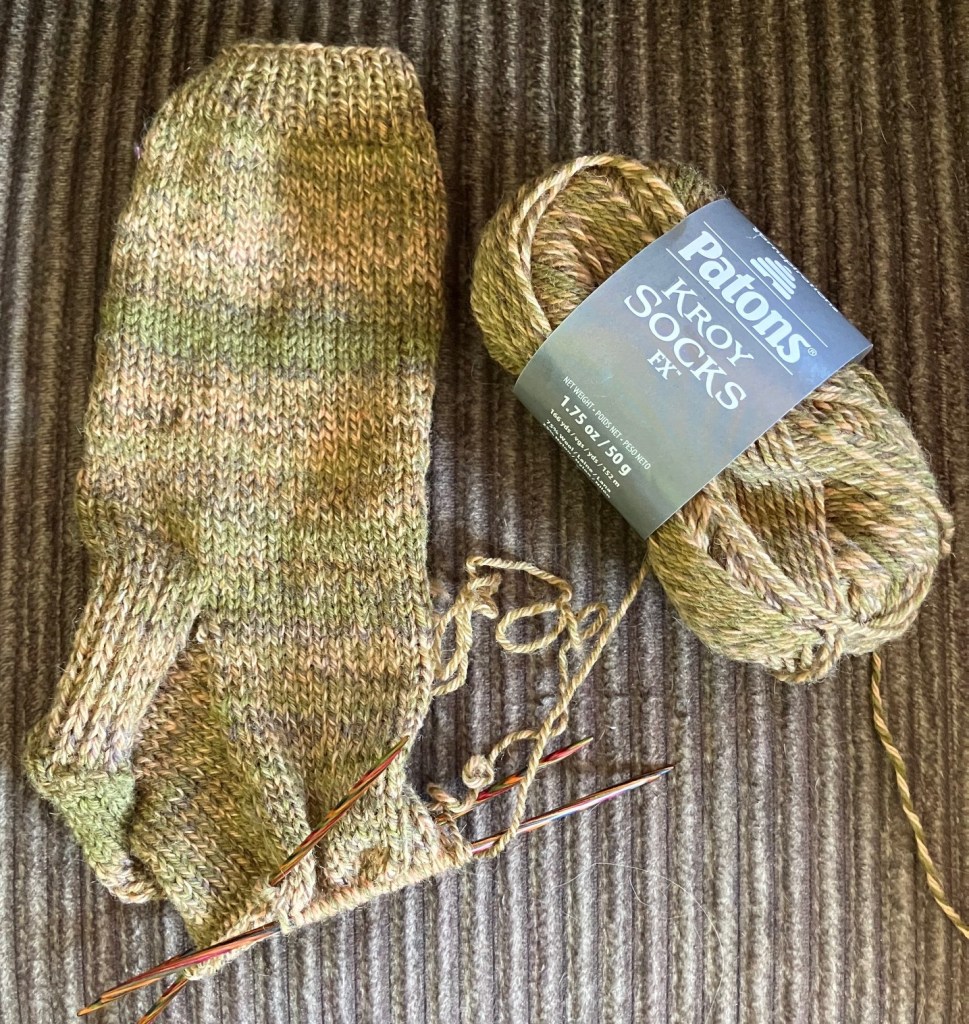 I dove into the stash and came up with more Kroy sock yarn. I liked my Midnight Orchid ones very much… but they are actually just a touch large. You’ll recall that I went up to a 2.75mm needle for those, but down to 56 stitches. So for this pair, I stuck with the needle size but went down to 52 stitches. I think it’s going to be the magic number with Kroy for my narrow little feet (I wish the rest of me was that slim!)