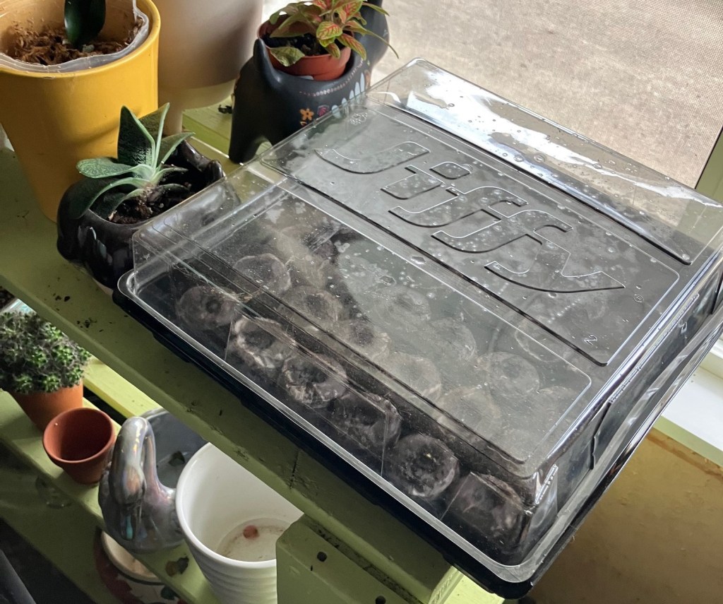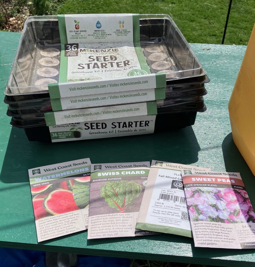 The Swiss Chard and Corn Flowers got planted directly, but the watermelon and sweet peas needed to be started inside. I didn’t have any more pans for seed snails, but I did still have some of these seed starter kits.