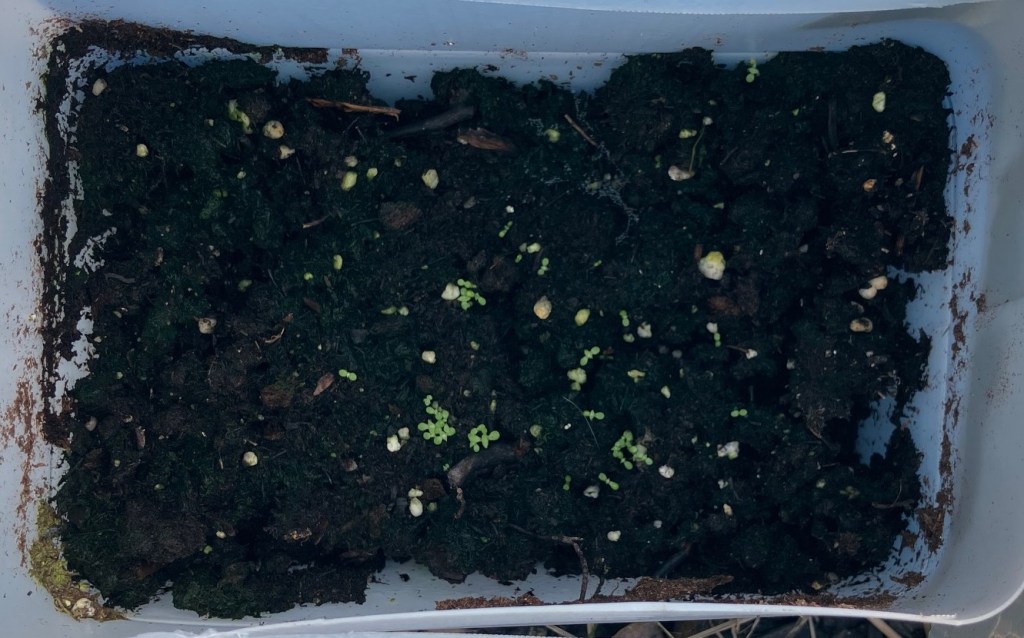 We’ve finally got signs of life in the Winter Sow jugs. If you recall, these were planted with native seeds from the Ottawa Seed Library. These are Joe Pye Weed, Pearly Everlasting and St. John’s Wort. I also have a jug of Hairy Beardtongue, but so far, nothing is happening there.