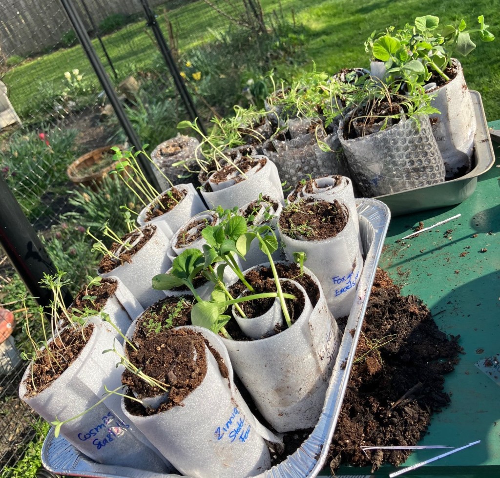 And those seed snails…. well, it was time to give them some attention. One of the advantages of snails is that you can plant many seeds in a small space. And… you don’t have to pot them on. You just have to unroll and pack in a little more soil every so often. This is only my second time trying seed snails. And last year, I started the seeds late so I didn’t bother with this step since everything was outside. I just put the seedlings in big pots outside.