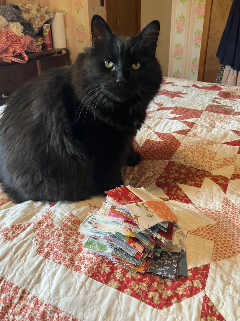 We got a nice little stack completed while working on our blocks. Of course, we’re these are small, so we are going to need a lot more than that to make a decent sized quilt. I suspect it will be at least another six months or so before we have anywhere near enough!