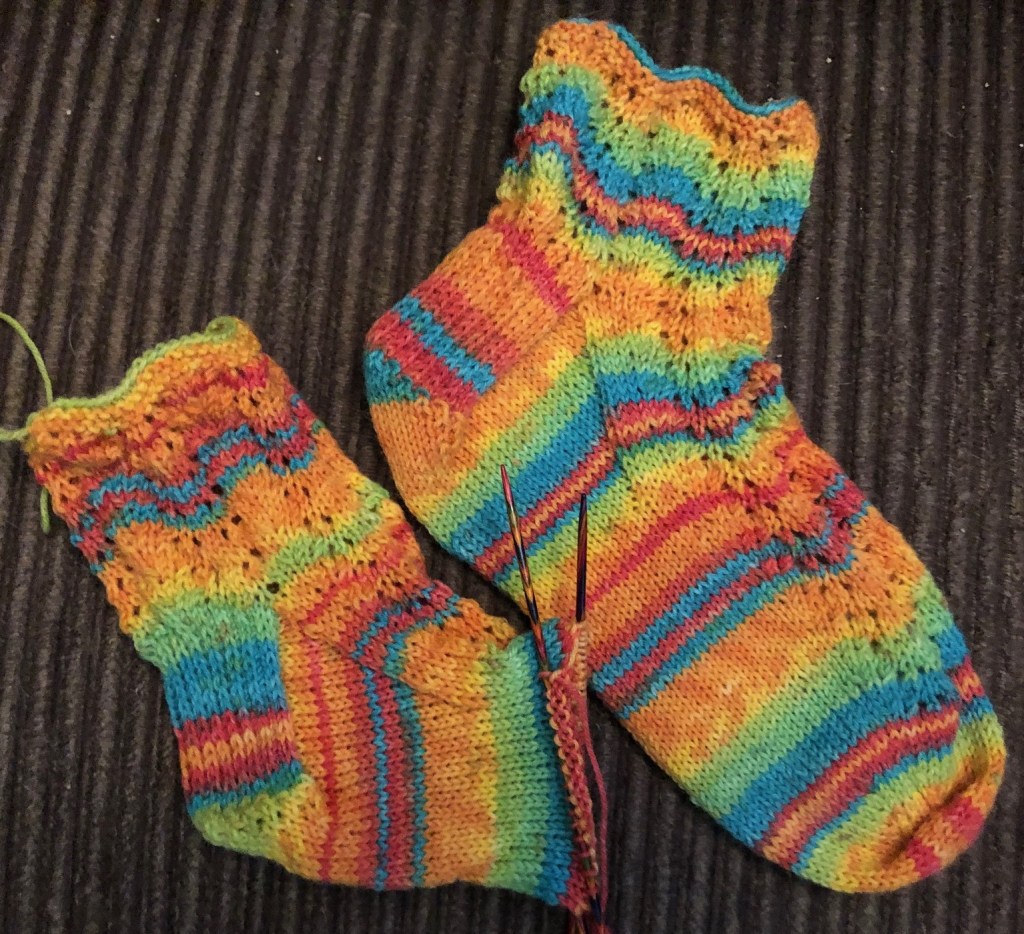 Now there’s still half of the month left, so I’m going to see if I can whip up another pair of shortie socks for me. Then I’ll turn my attention to something else for November.